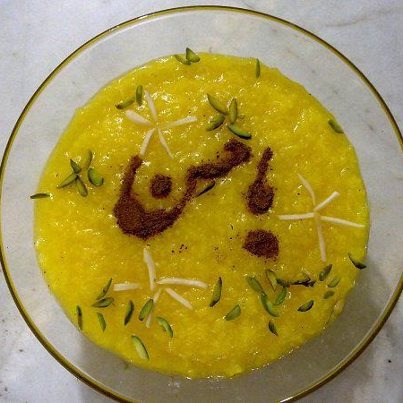 وقتی زعفران و شکر را اضافه میکردند مادر بزرگم صدایمان میکرد و میگفت یه قاشق ازآن را به بچه ها بدهید ببینند که شکرش خوب است یا نه ؟ البته ما که سر در نمی اوردیم فکر کنم فقط صدایمان میکرد که ما هیچ وقت خاطره ی این روز را از یاد نبریم از بس به ما با این کار شخصیت میداد !